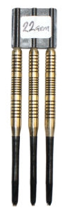 SET OF BRASS DARTS 22 GRAM WITH A SET OF FLIGHTS AND STEMS + POINT PROTECTOR (no case).